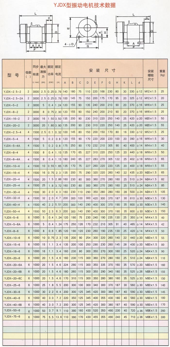 YJDX振動電機(jī)技術(shù)參數(shù)